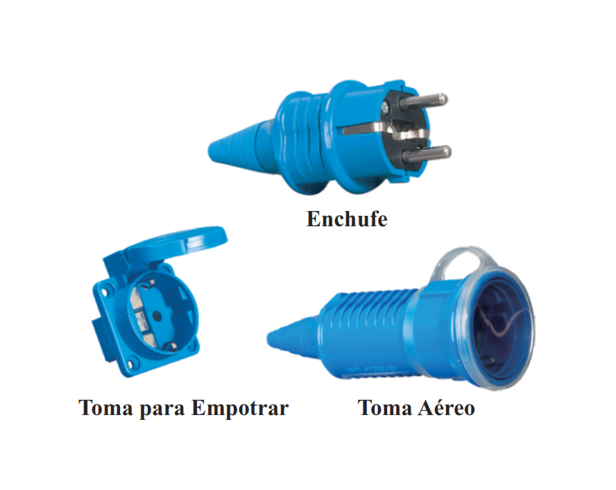 Los enchufes – Tomas Aereo y Toma para Empotrar en modelo schuko, estan diseñados están diseñados para manejar hasta 16 amperios de corriente y voltajes de hasta 230 voltios.